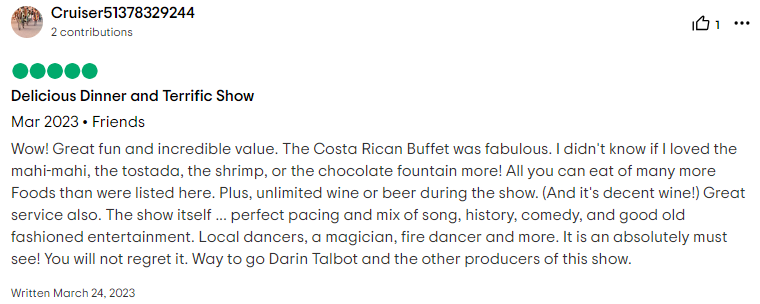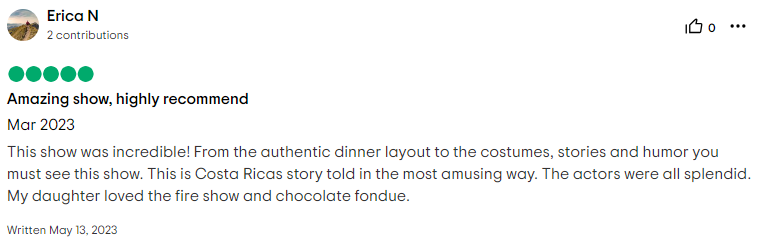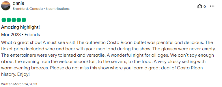 Overall, the Pura Vida Show is a wonderful celebration of Costa Rican culture and a truly unforgettable experience. I highly recommend it to anyone visiting this beautiful country.